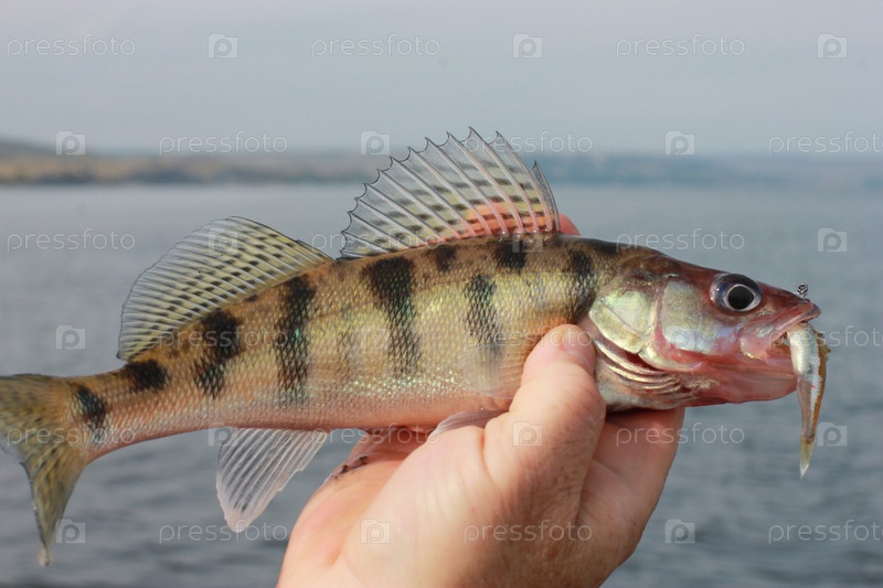 Пойманная рыба в руке рыбака