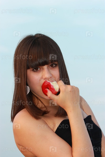 Девушка ест яблоко