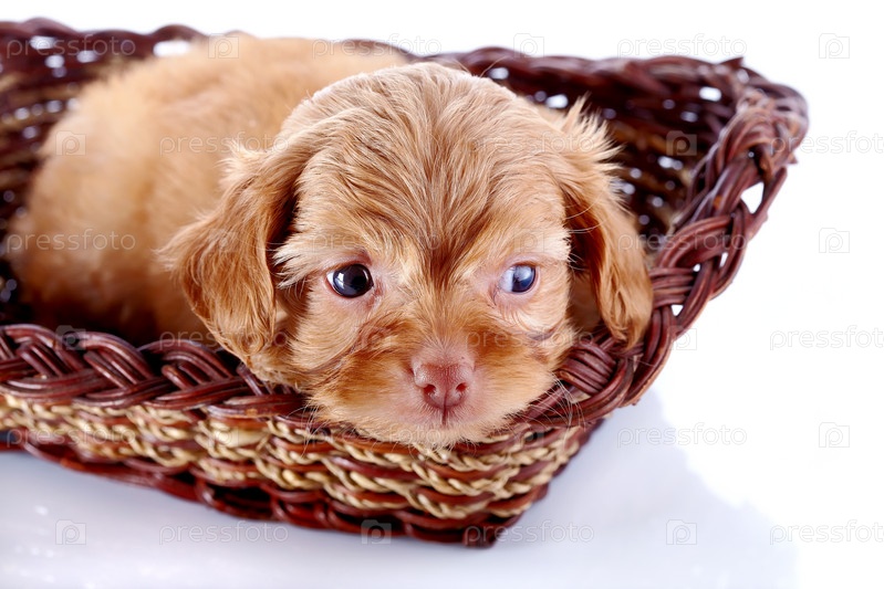 Щенок декоративной породы на белом фоне