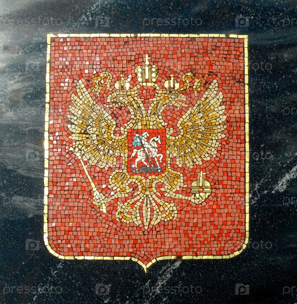 Герб России в мозаике. Фрагмент Ганзейского фонтана в Великом Новгороде