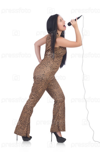 Певица с микрофоном на белом фоне