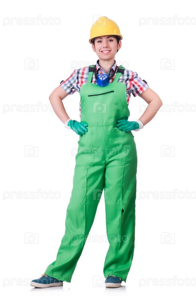 Молодая женщина в зеленом комбинезоне