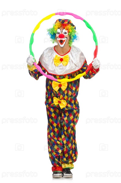 Клоун с обручем, изолированный на белом фоне