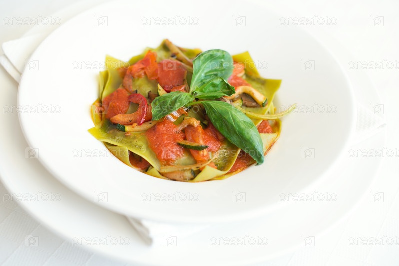 Шпинатная лазанья с овощами и томатным соусом