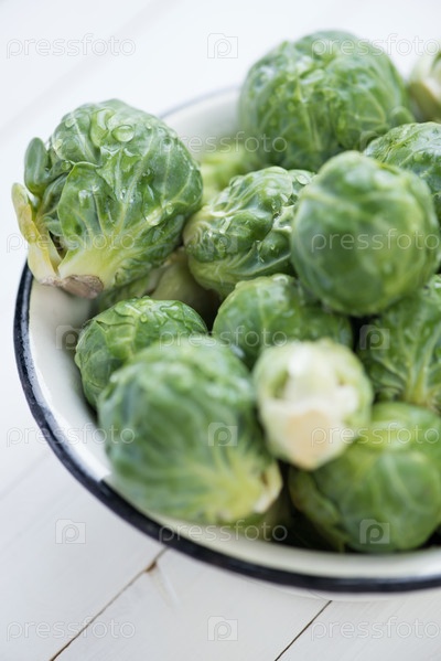 Брюссельская капуста в миске, крупный план