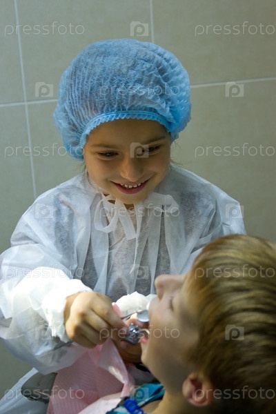 Пара детей играет у дантиста