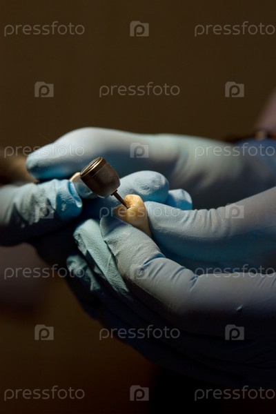Хирург-стоматолог формирует зубной протез