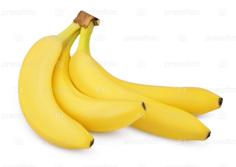 Четыре банана, изолированных на белом фоне