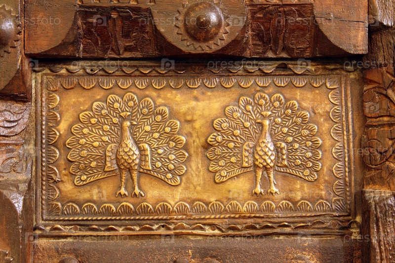 Индийский металлический орнамент с павлинами