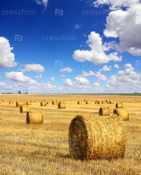 Заготовленные тюки соломы в поле