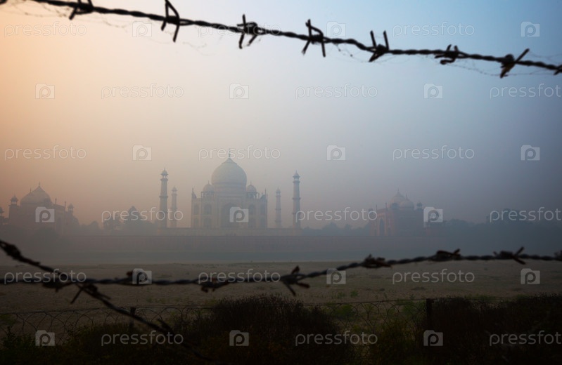 Колючая проволока вокруг Тадж Махала, вид с реки