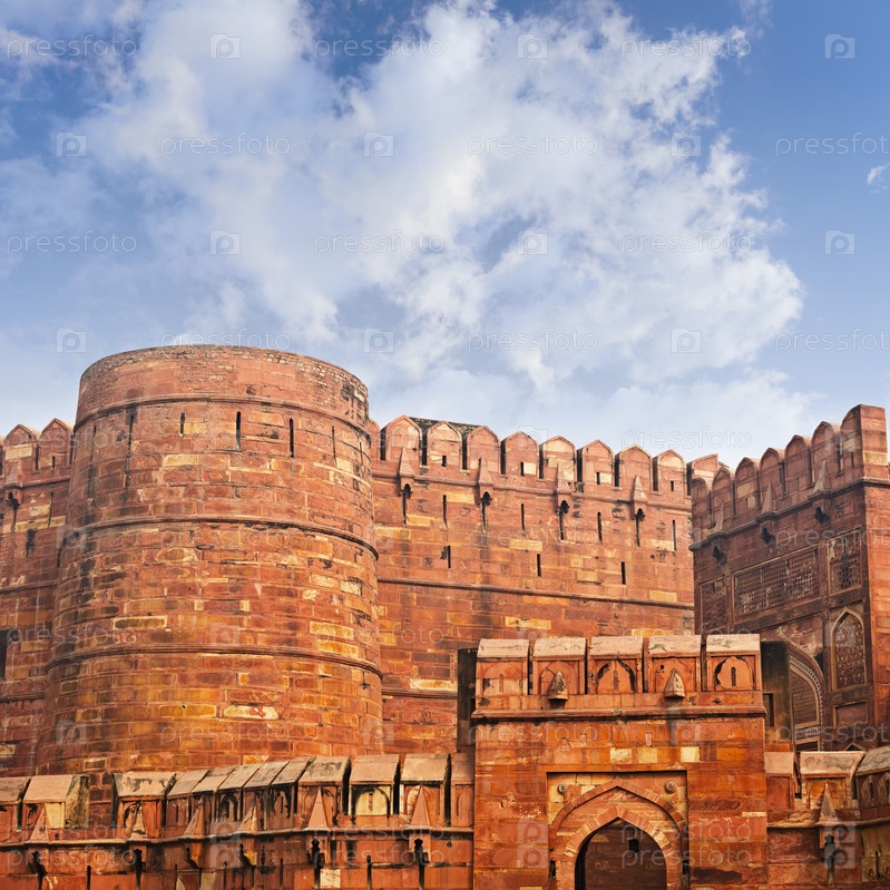 Стены древнего Красного форта в Агре, Индия