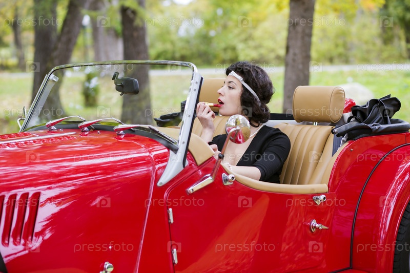 Женщина в ретро-автомобиле