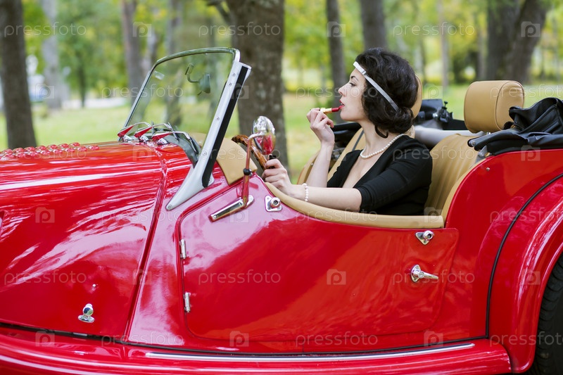 Женщина в ретро-автомобиле
