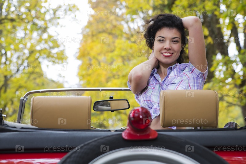 Женщина в ретро-автомобиле