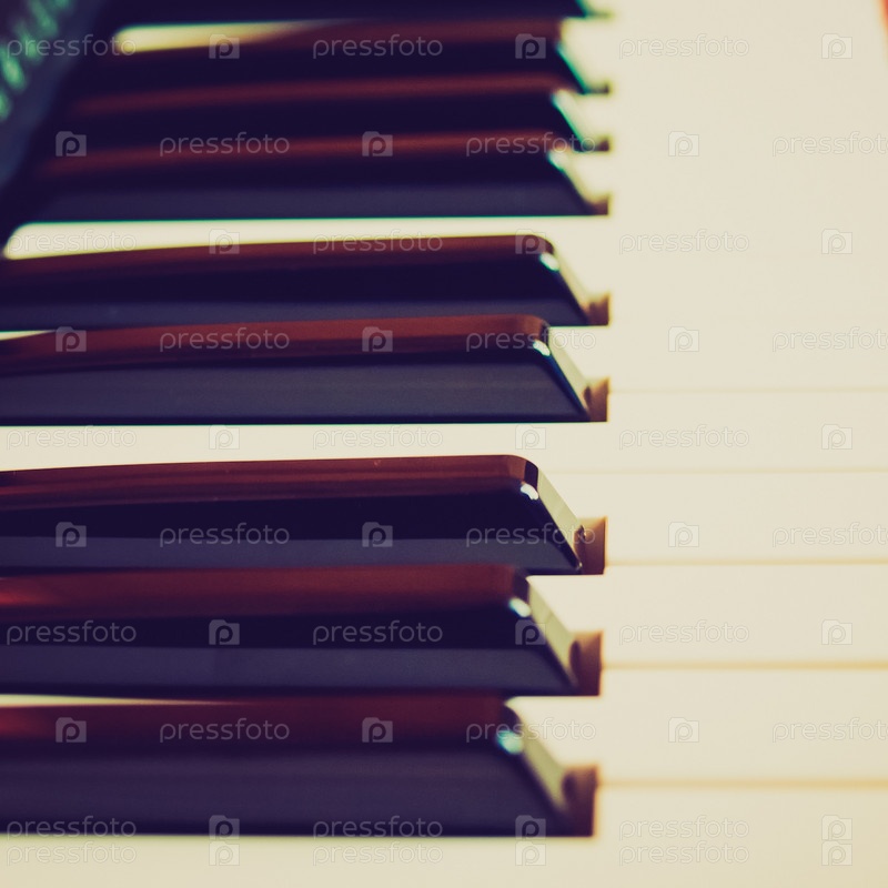 Черно-белые клавиши, выборочный фокус. Винтажное изображение