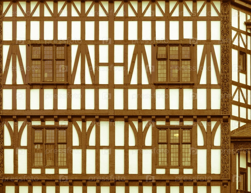 Тюдоровское здание с деревянным каркасом в Ковентри, Великобритания. Винтажное изображение