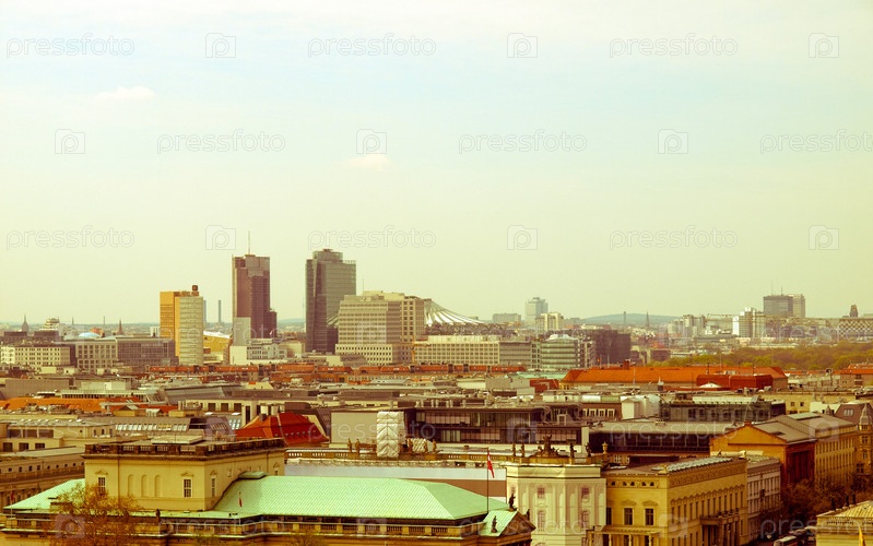 Вид города Берлин с высоты птичьего полета, Германия. Винтажное изображение