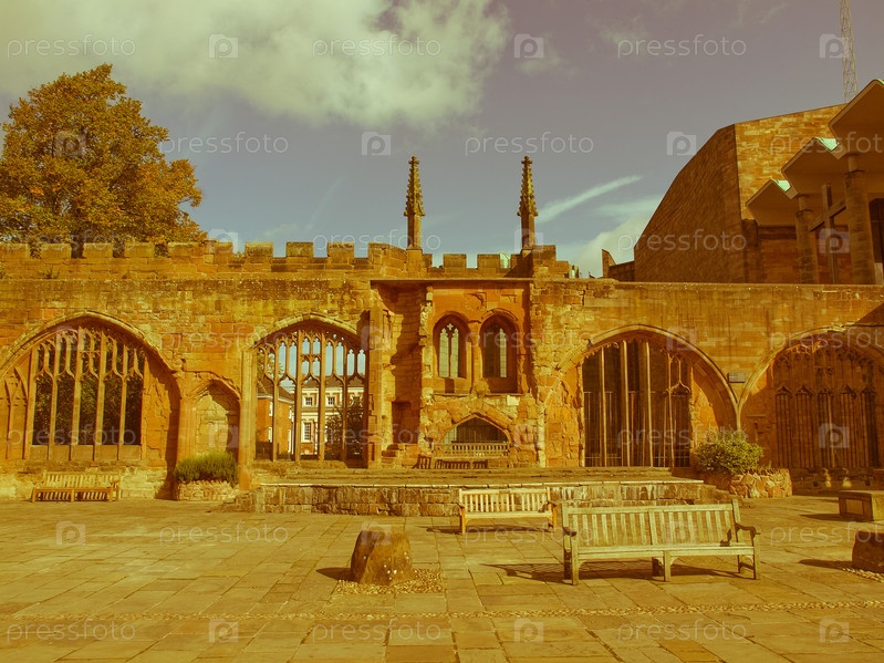 Руины собора Святого Михаила, Ковентри, Англия. Винтажное изображение
