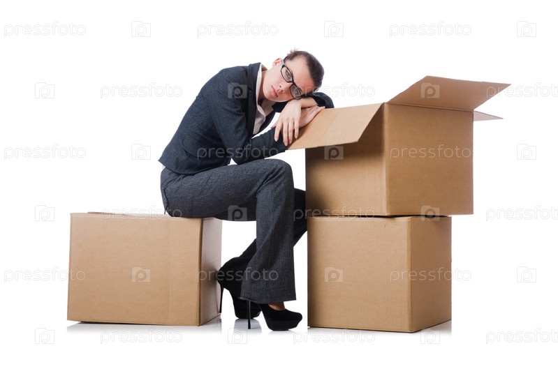 Бизнес-леди с коробками на белом фоне
