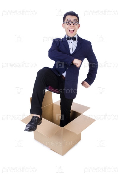 Бизнесмен с коробками, изолированный на белом