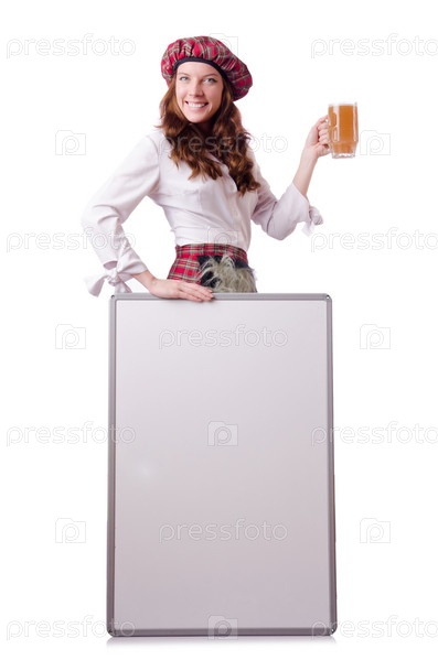 Шотландка с доской на белом фоне