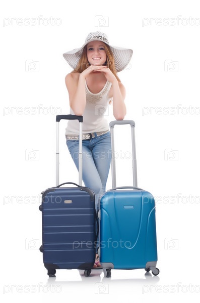 Молодая путешественница, изолированная на белом