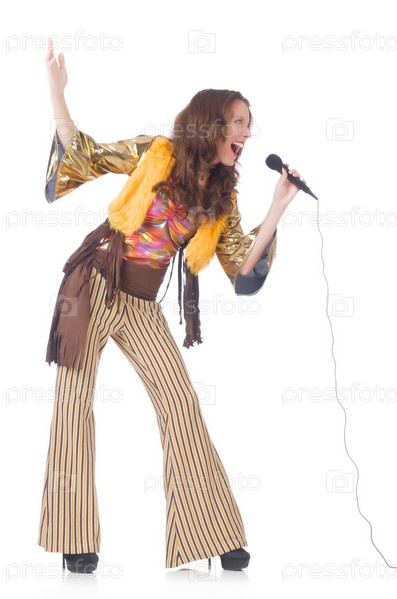 Женщина в испанской одежде с микрофоном