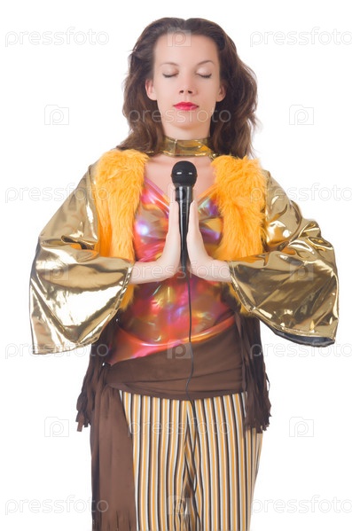 Женщина в испанской одежде с микрофоном