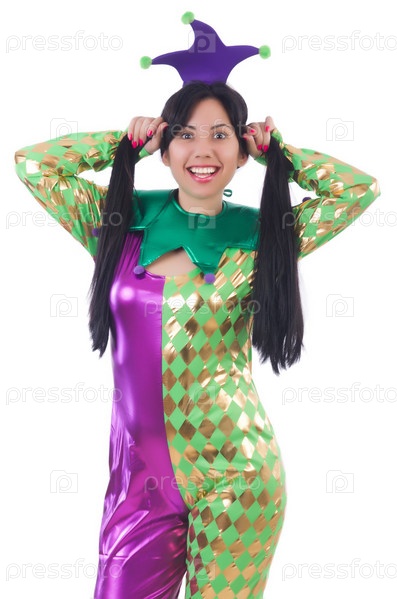 Женщина клоун, изолированная на белом фоне