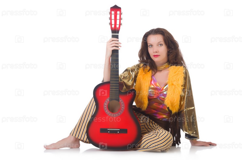 Женщина в мексиканской одежде с гитарой