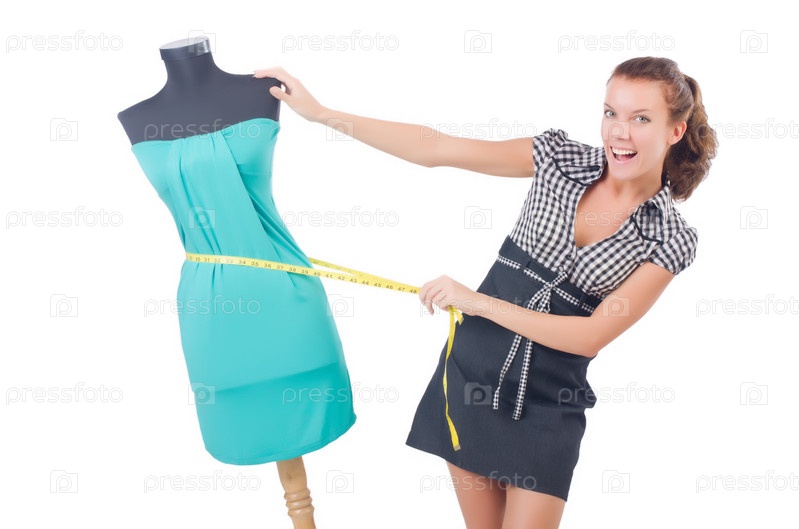 Женщина портной, изолированная на белом фоне