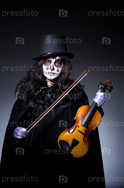 Монстр играет на скрипке в темной комнате