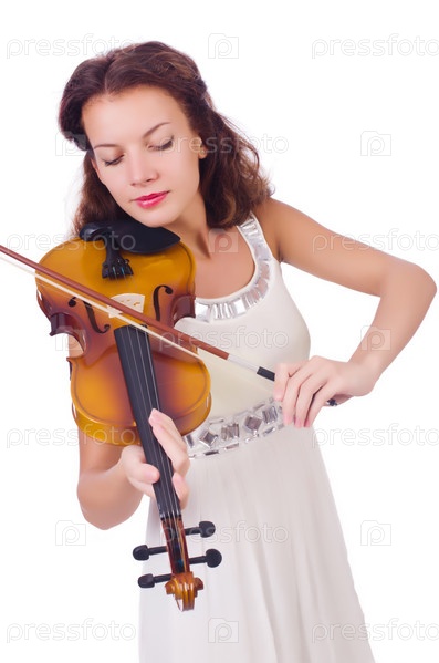 Девушка со скрипкой на белом фоне