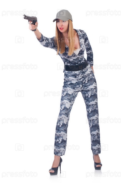 Женщина-солдат, изолированная на белом фоне