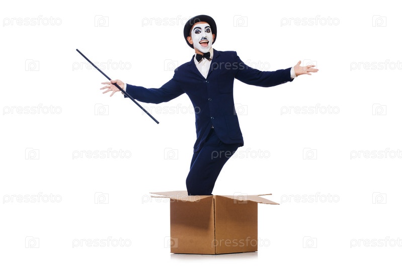 Человек с тростью в коробке