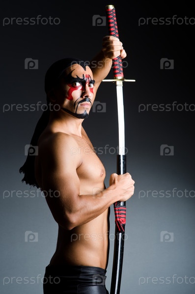 Человек с мечом и раскрашенным лицом