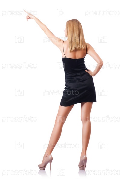 Женщина нажимает на виртуальные кнопки, изолированная на белом фоне