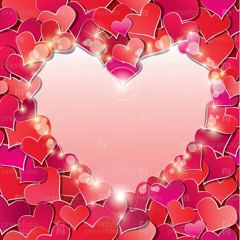 День Святого Валентина или свадьба - фон с красными сердцами. Праздничная рамка