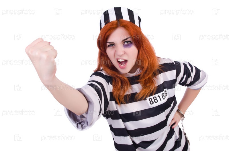 Заключенный в полосатой форме на белом фоне