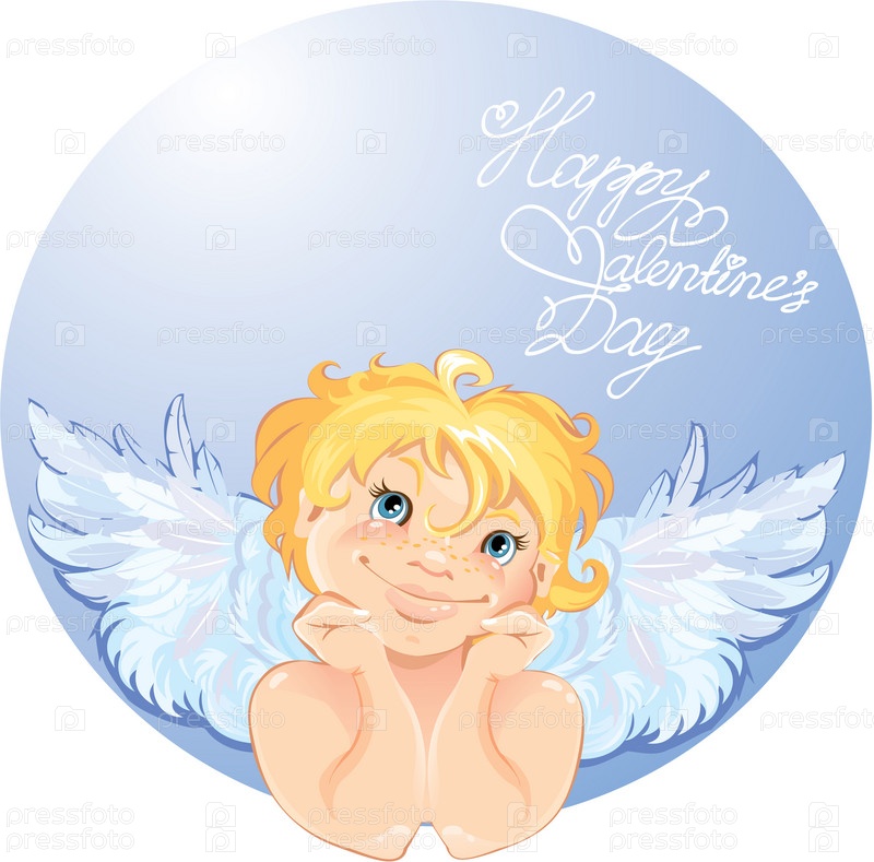 Милый ангел и круглая рамка. День Святого Валентина