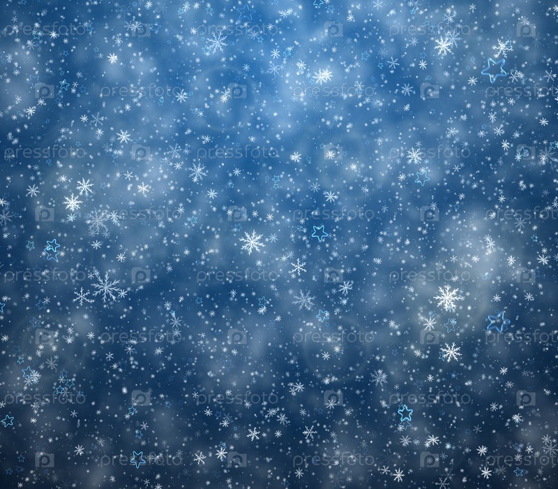 Морозный зимний фон, падающие снежинки и звезды
