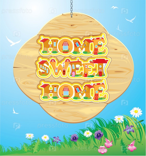 Деревянная вывеска со словами "Дом, милый дом" на фоне неба