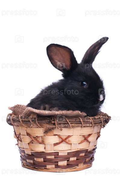 Черный кролик на белом фоне