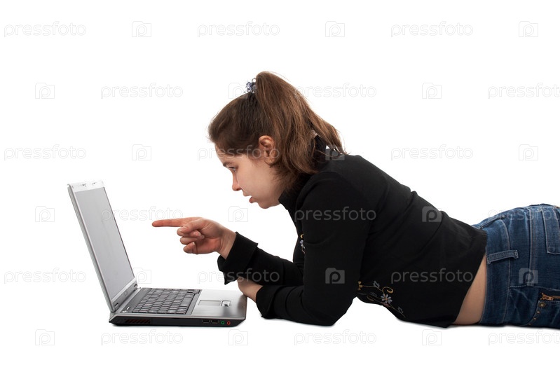 Девушка с ноутбуком на белом фоне