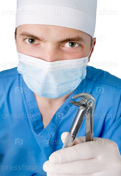 Врач-стоматолог с пинцетом