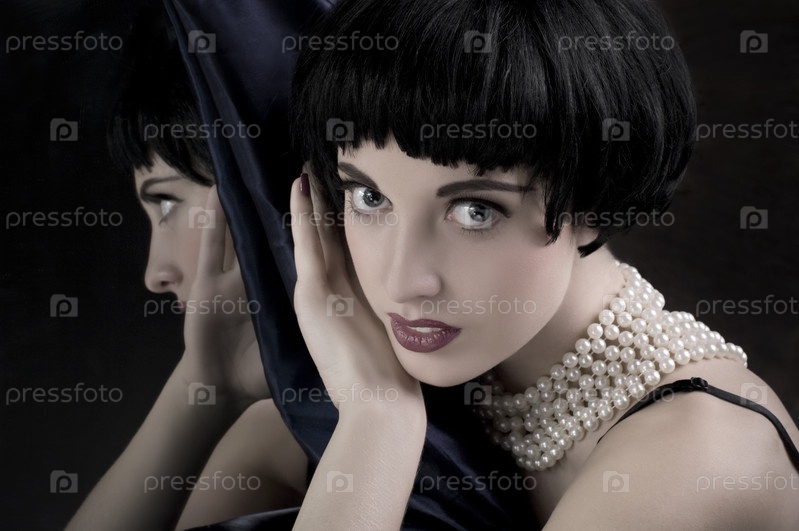 Красивая брюнетка перед зеркалом