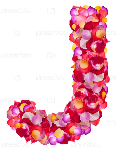 Буква J из разноцветных листьев роз