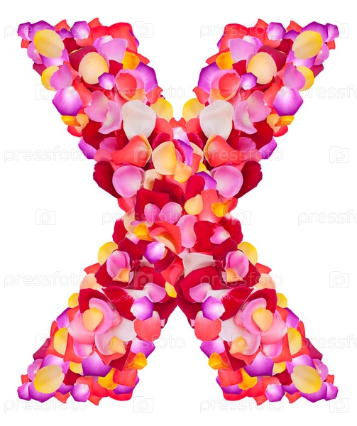 Буква X из разноцветных листьев роз