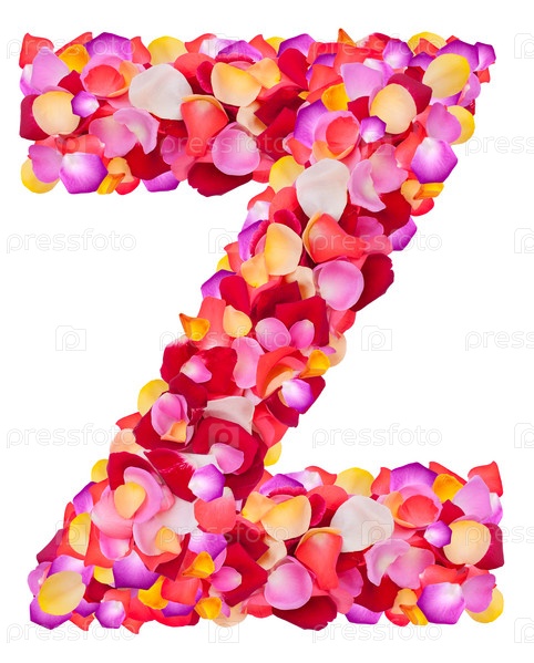 Буква Z из разноцветных листьев роз